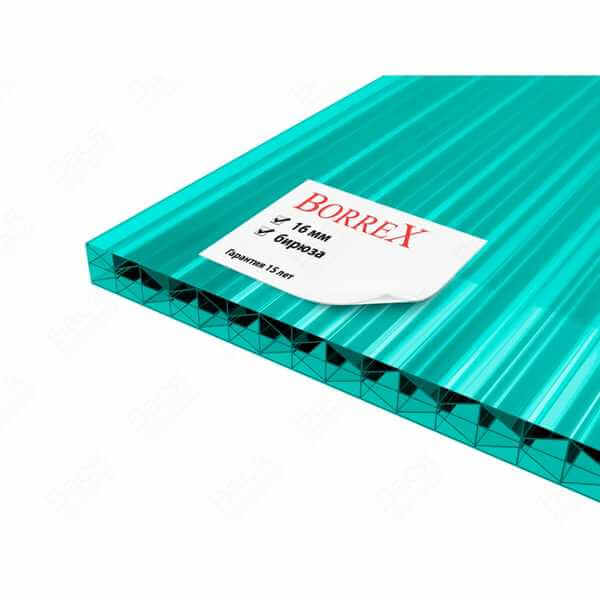 Сотовый поликарбонат 16 мм BORREX бирюза 2100х12000 мм - это прочный и легкий материал, который отлично подходит для использования в различных строительных и дизайнерских проектах. Поликарбонат обладает высокой прочностью и устойчивостью к воздействию внешних факторов, что делает его идеальным выбором для кровель, навесов, ограждений и других конструкций.
