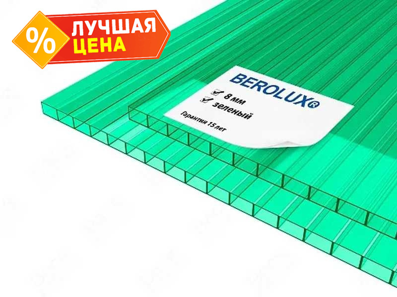 Сотовый поликарбонат 8 мм BEROLUX зелёный 2100х12000 мм