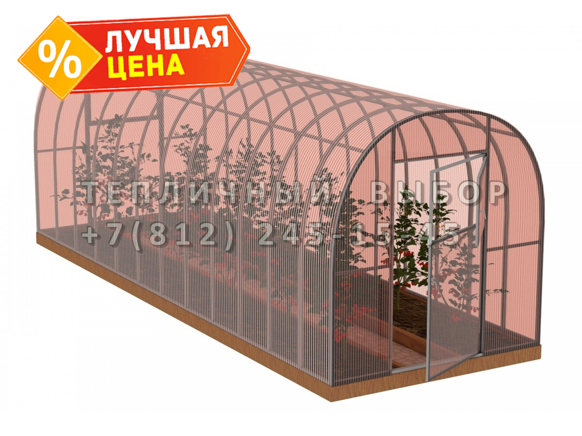 Теплица из поликарбоната-фито Усиленная Арочная 2,1х12 h=2 м профиль 25х25 мм