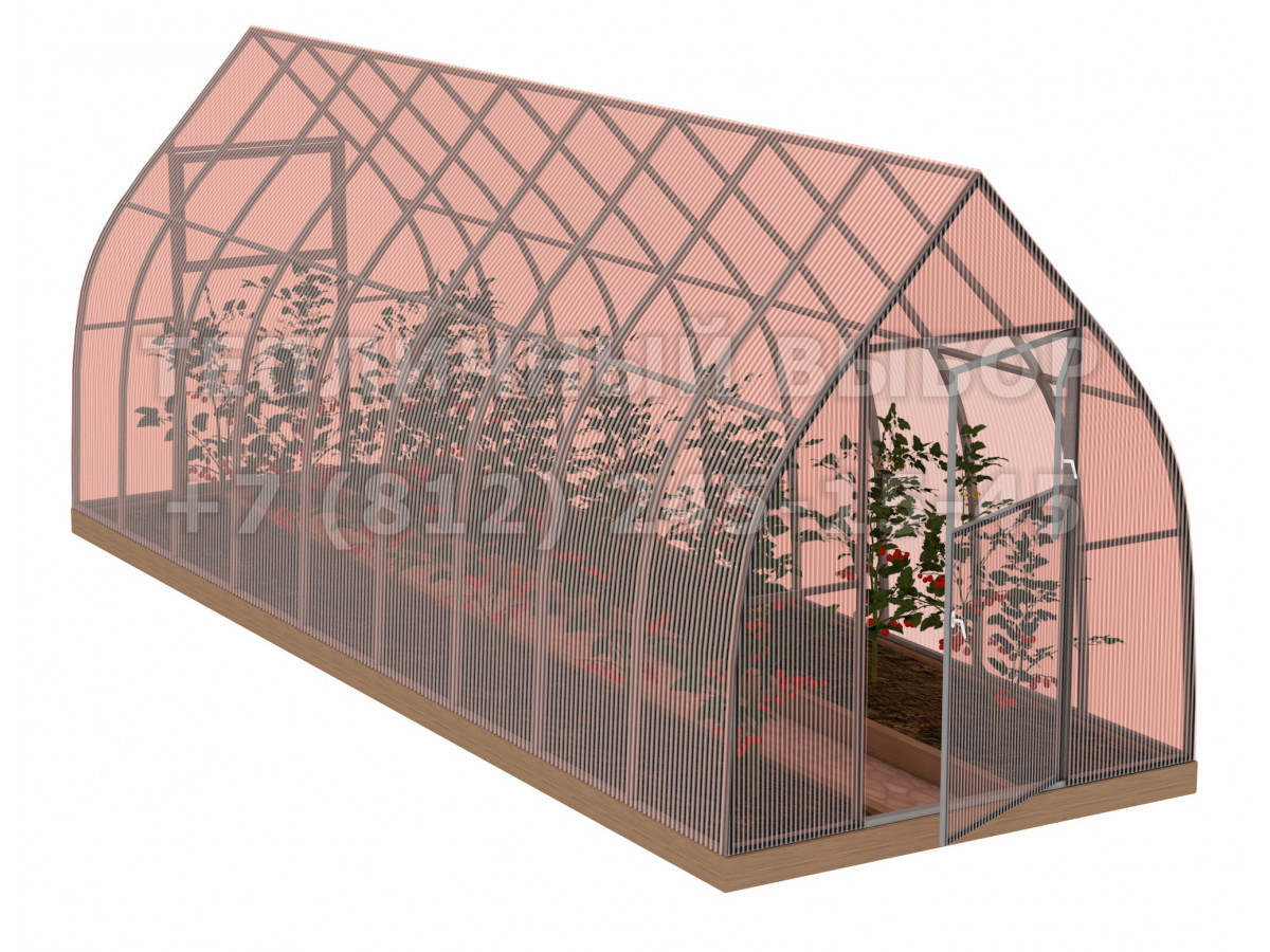 Теплица из поликарбоната-фито Усиленная Капелька 2,1х12 h=2.3 м профиль 25х25 мм