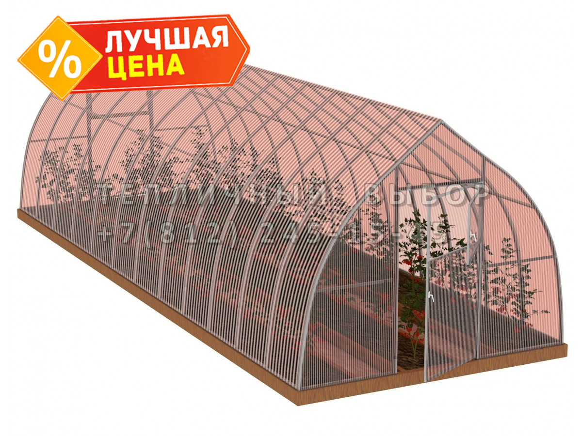Теплица из поликарбоната-фито Усиленная Капелька 2,5х8 h=2.3 м профиль 25х25 мм