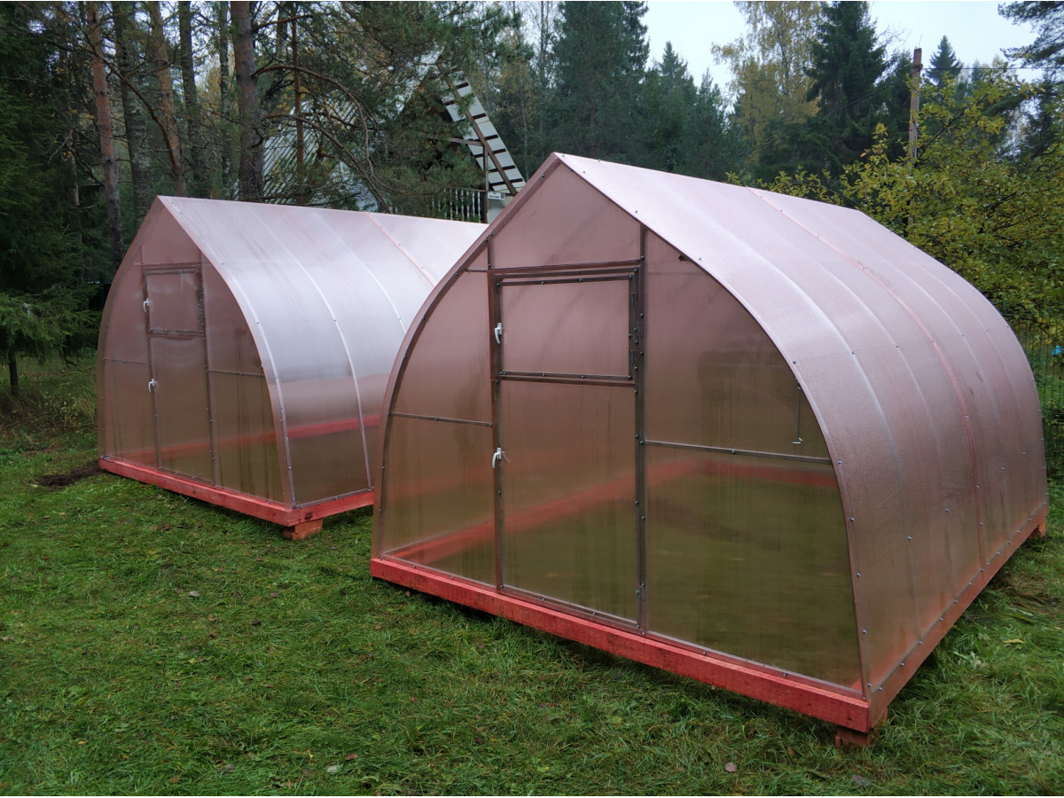 В разобранном виде теплица состоит из отдельных сварных рам в виде дуги.