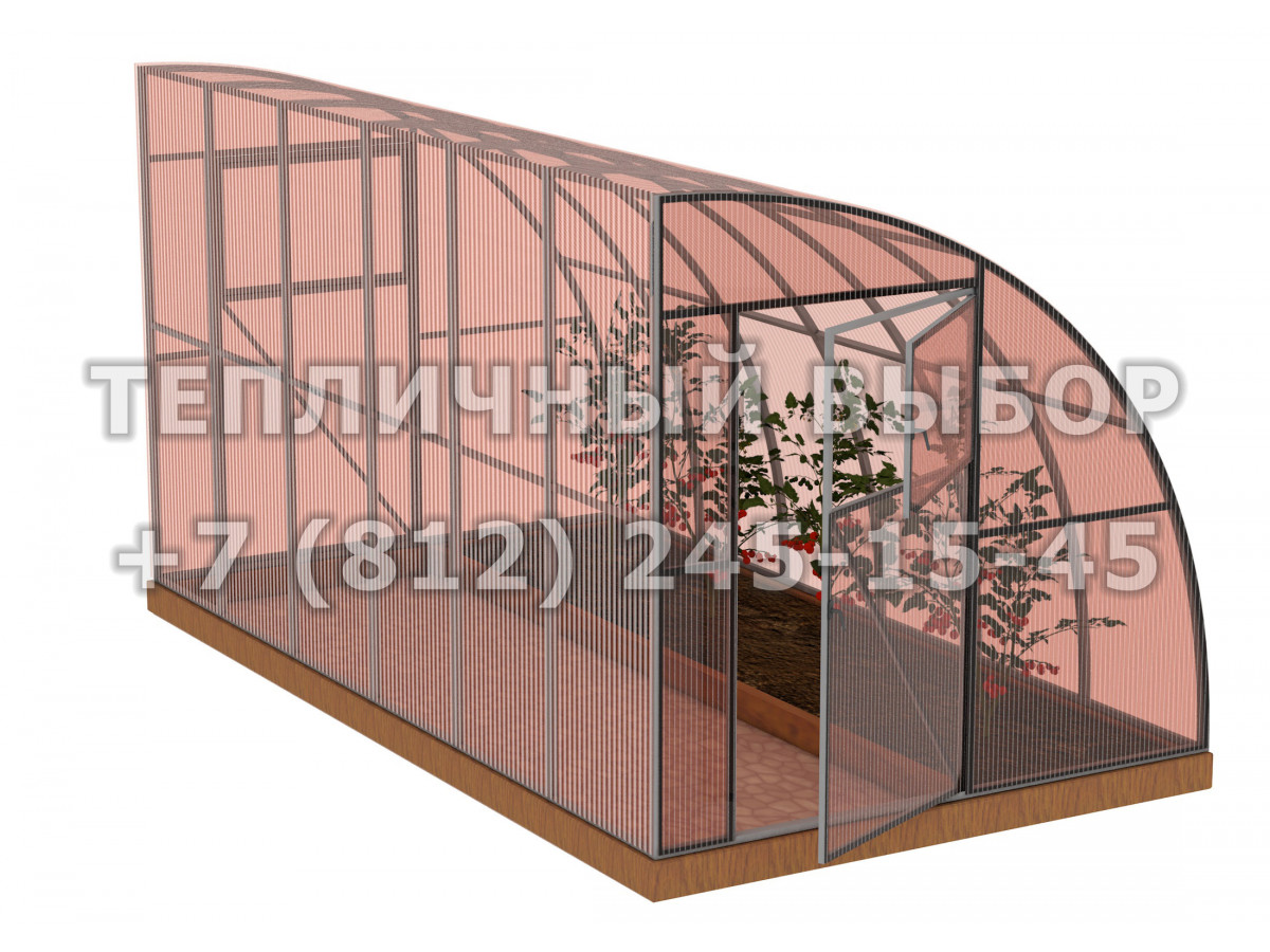 • практичный каркас с дверьми и форточками в каждом торце обеспечивает легкий доступ в теплицу и её проветривание;