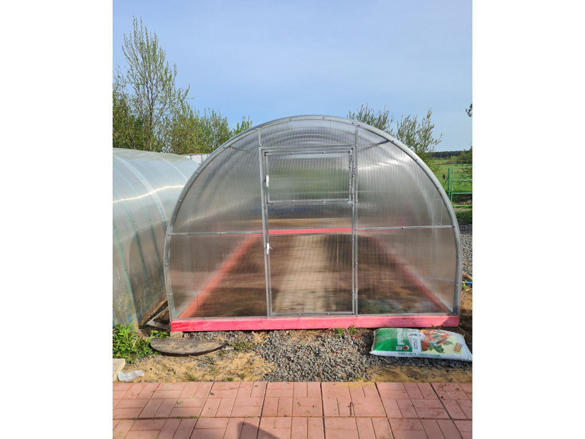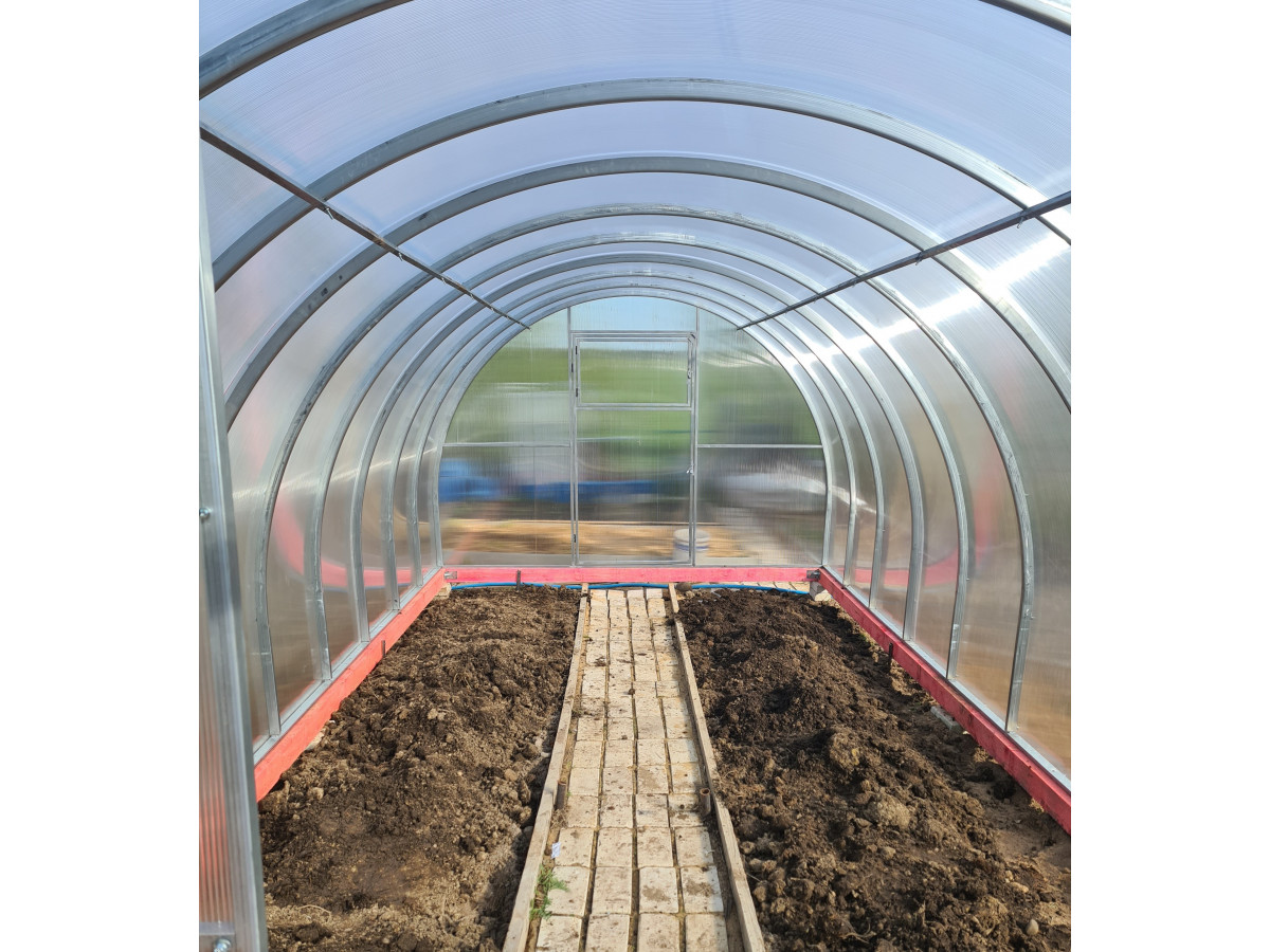 • надежная и долговечная конструкция за счет частой установки дуг в теплице (междуговое расстояние 65 см) и прочной профильной трубы (20х40мм)