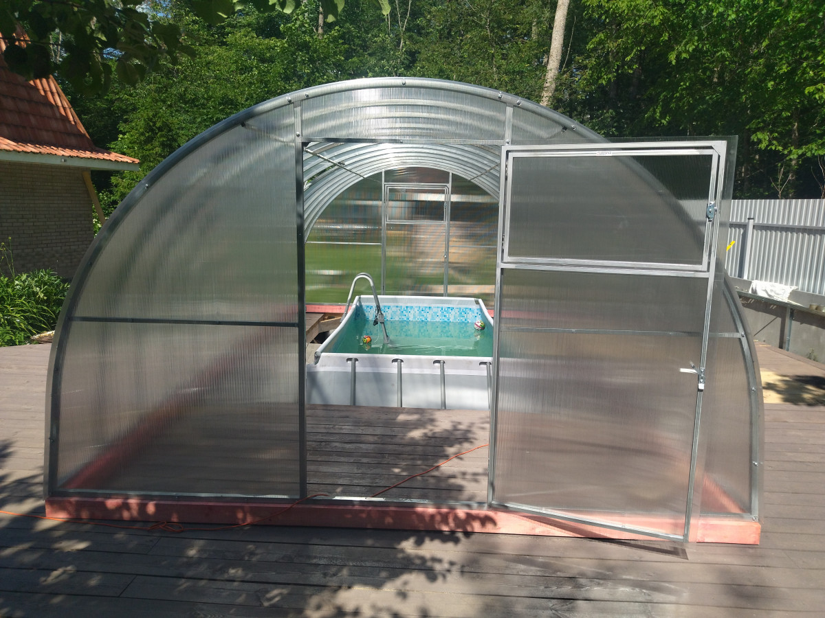 • практичная конструкция: 2 двери и 2 форточки обеспечивают легкий доступ в теплицу и ее проветривание. Размер дверей 171х89 cм, размер форточек в дверях 48х83 см