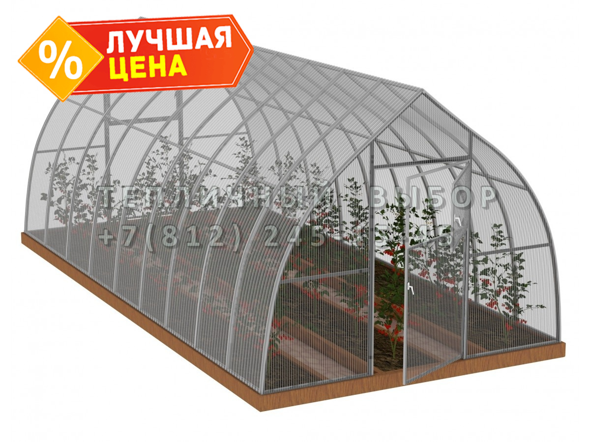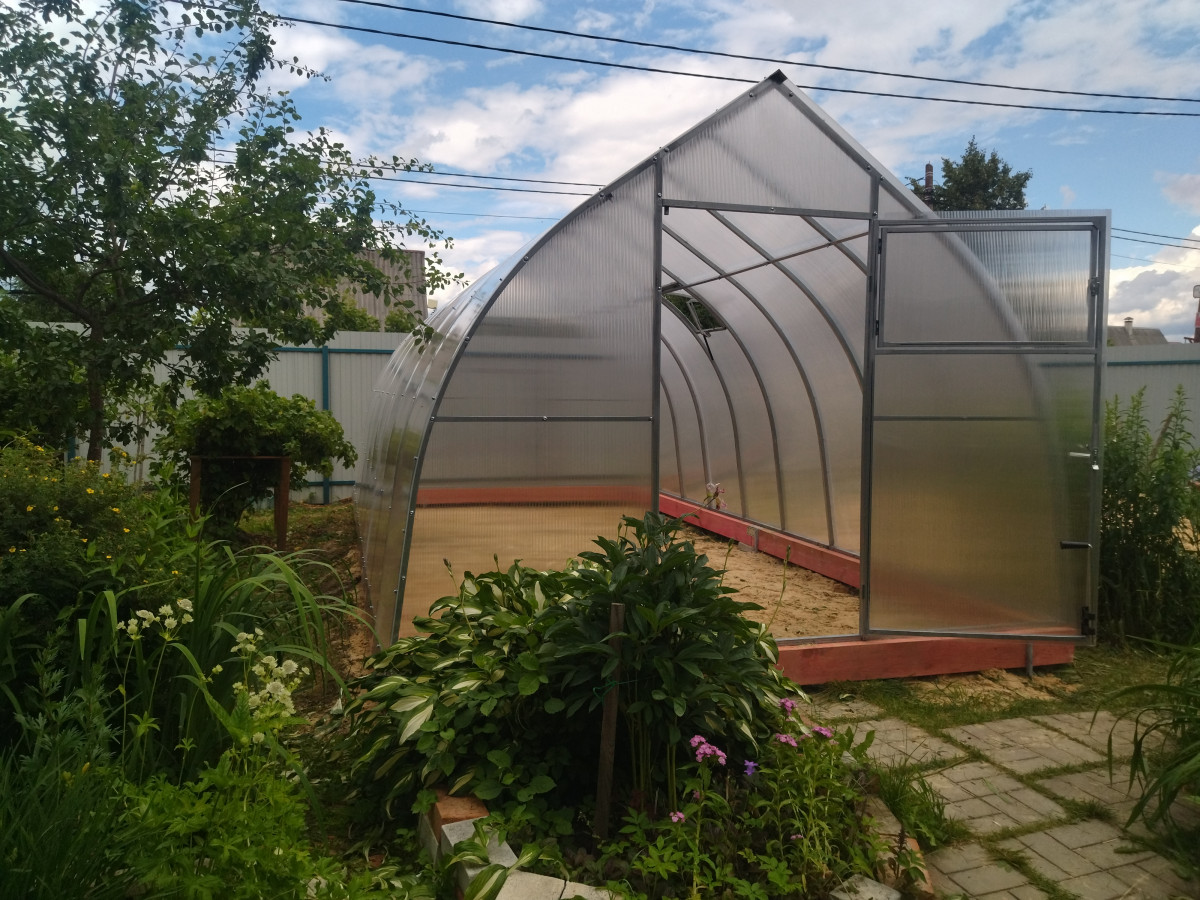 • прочная за счет частой установки дуг в теплице (междуговое расстояние 65 см) и оптимального сечения профильной трубы (25х25 мм)