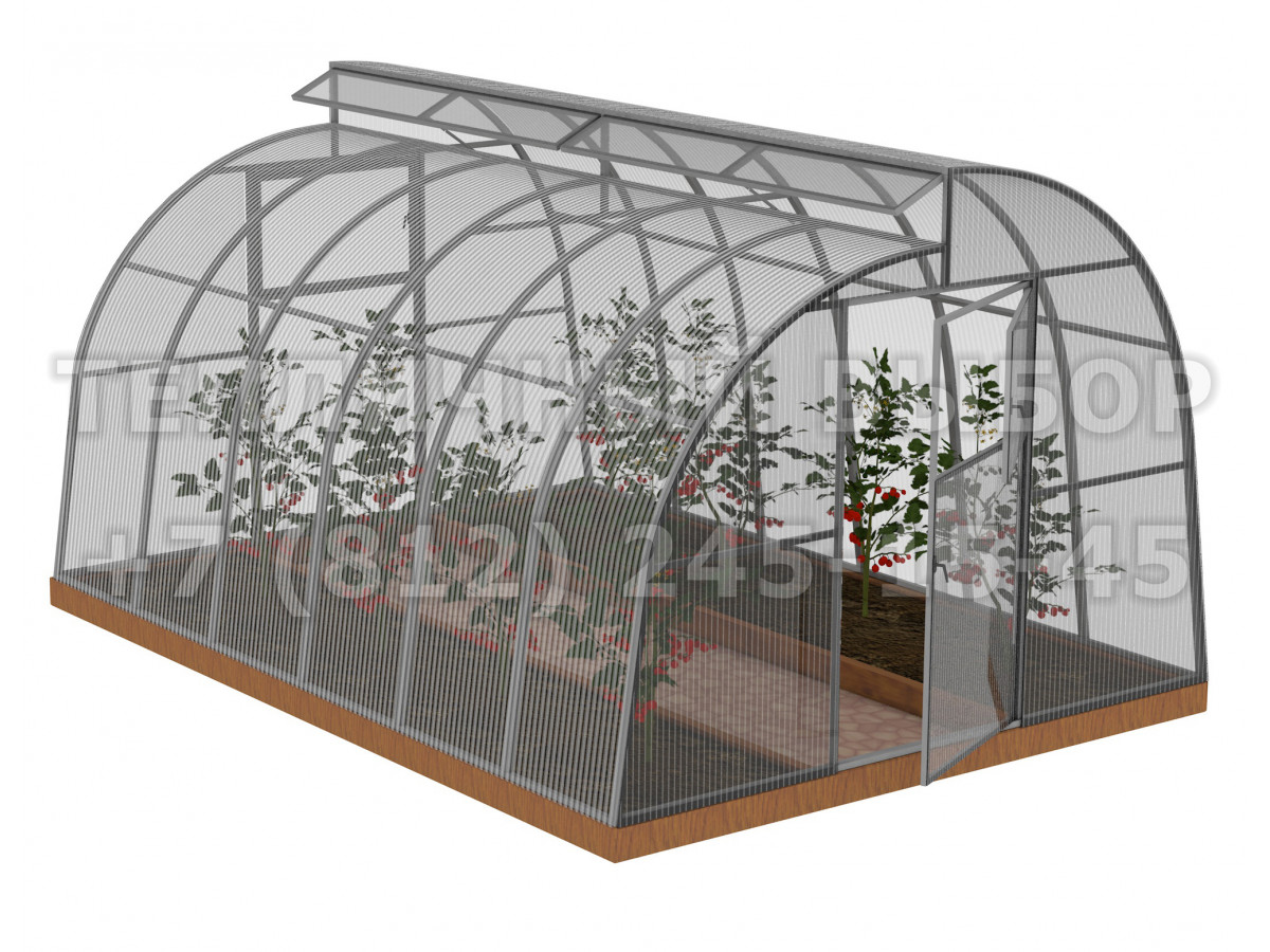 • длина фрамуги соответствует длине теплицы, высота 22 см, открывается изнутри и фиксируется в открытом состоянии с помощью ограничителя;