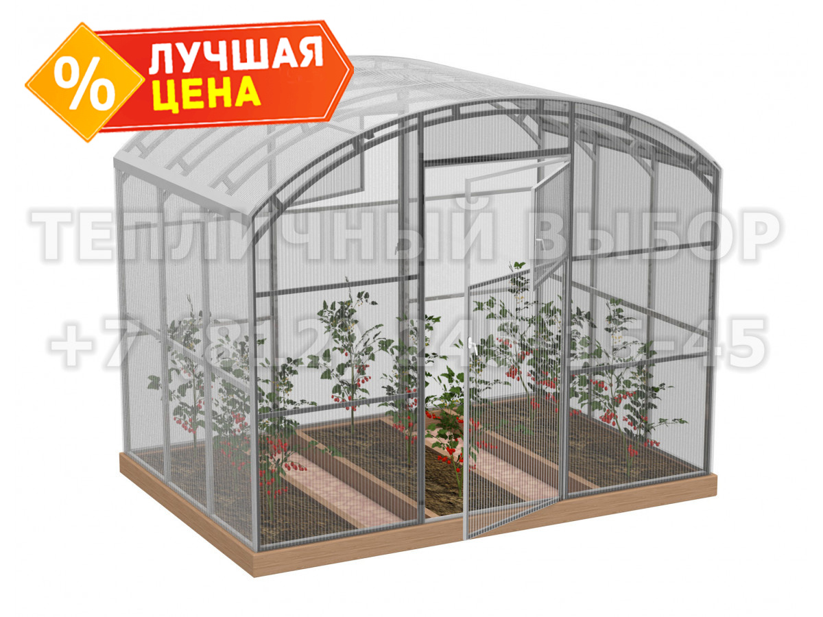 • теплица рекомендована для северных широт с большим количеством осадков, выдерживает порывистые ветра и сильные снегопады, не деформируется под слоем слежавшегося снега толщиной до 90 см;